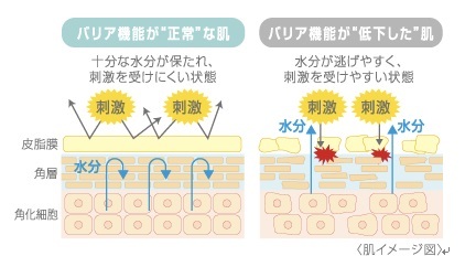 しかし、乾燥した皮膚はバリア機能がうまく働かず、外部刺激が侵入しやすい状態になっています。