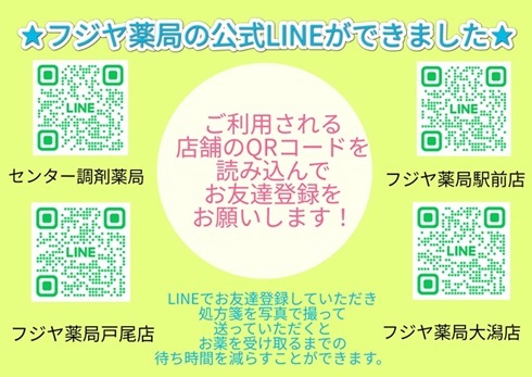 フジヤ薬局公式LINEアカウント開設のお知らせ